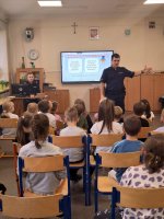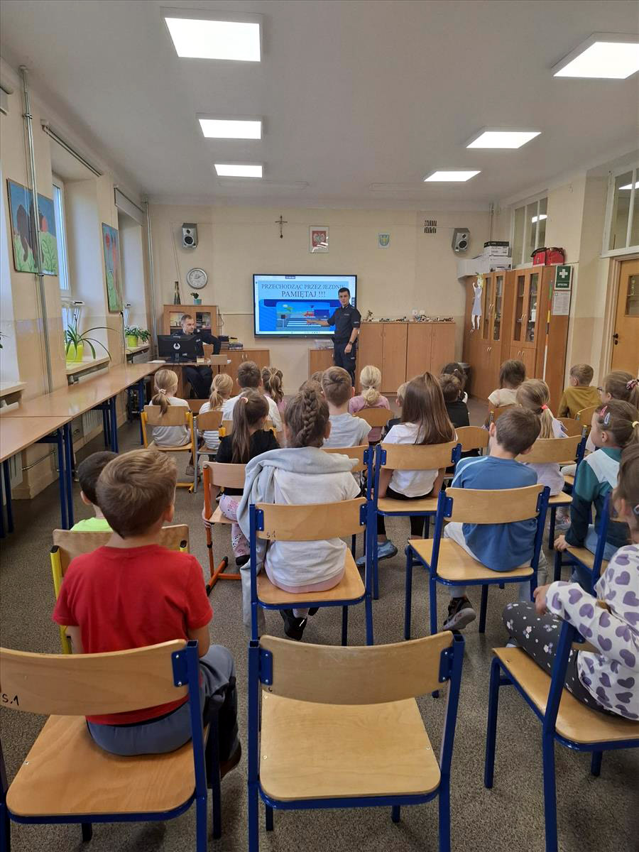 W dniu 19.09 klasy pierwsze gościły w szkole funkcjonariuszy policji w ramach akcji "Bezpieczna droga do szkoły". Spotkanie miało na celu przekazanie pierwszakom niezbędnych informacji, o tym jak bezpiecznie poruszać się po drodze, co oznacza zachowanie szczególnej ostrożności oraz jak sprawić, by być lepiej widocznym na drodze. Na koniec spotkania uczniowie zostali wyposażeni w odblaskowe zawieszki, które będą przypominały im o tym ważnym wydarzeniu.