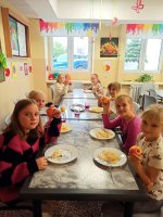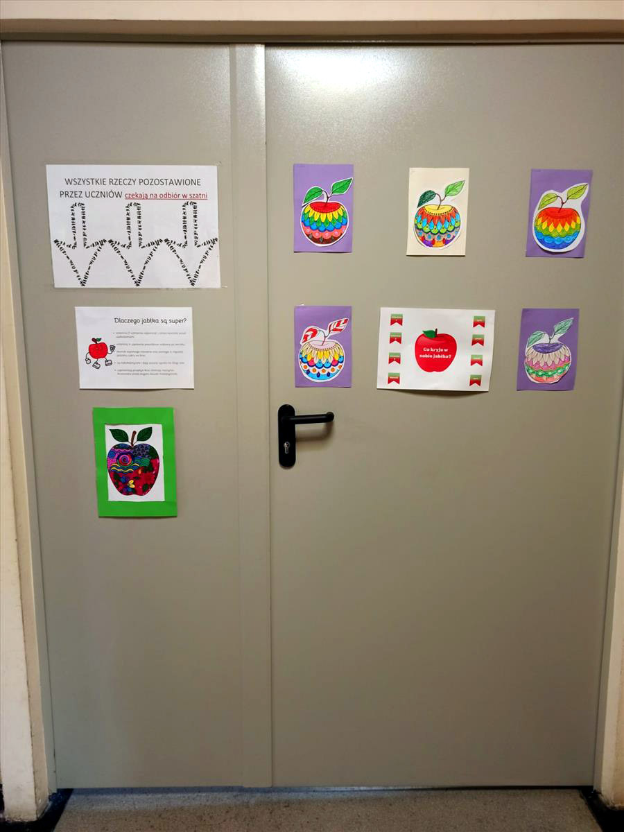 Uczniowie przygotowali kolorowe rysunki i plakaty. W szkolnej stołówce odbyła się degustacja jabłek 🍎