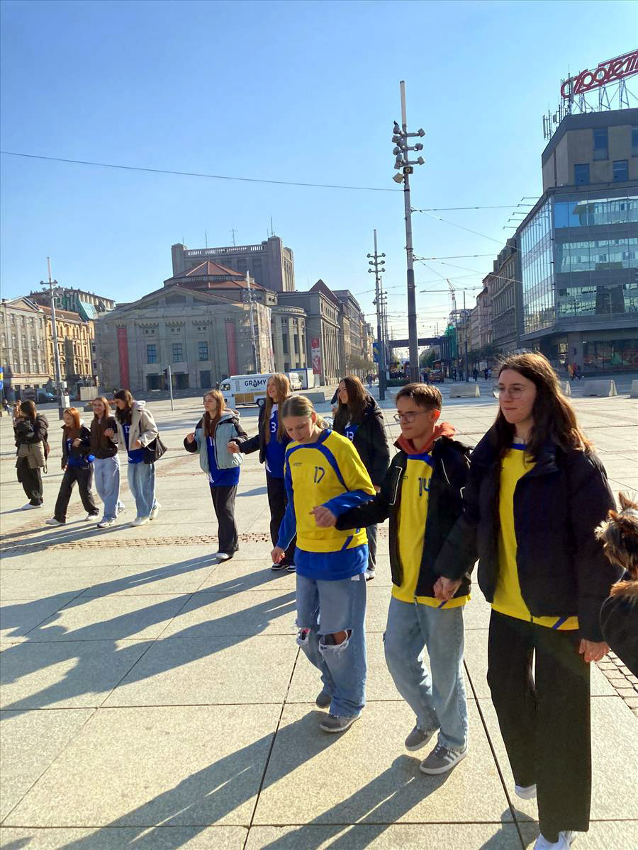 03.10.2025r. uczniowie z klasy 8a brali udział w happeningu tanecznym pod nazwą „Zatańcz Trojaka”, które odbyło się na rynku w Katowicach. Inicjatywa ta zgromadziła uczniów i uczennice z wielu katowickich szkół, a jej celem było wspólne zatańczenie tradycyjnego śląskiego tańca — trojaka.